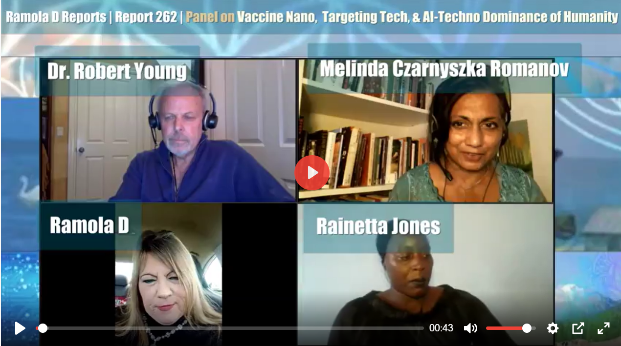 Informative and wide-ranging conversation with Dr. Robert Young, Rainetta Jones, and Melinda Czarnyszka Romanov examining the mRNA/liposome/graphene-laden vaccines now hooking people up to cloud computing and AI which is something people being targeted with these Smart City technologies as well as micro and nanotech implants and WBANs (wireless body area networks) and BCI (brain computer interface) implants have been reporting for a few decades now.